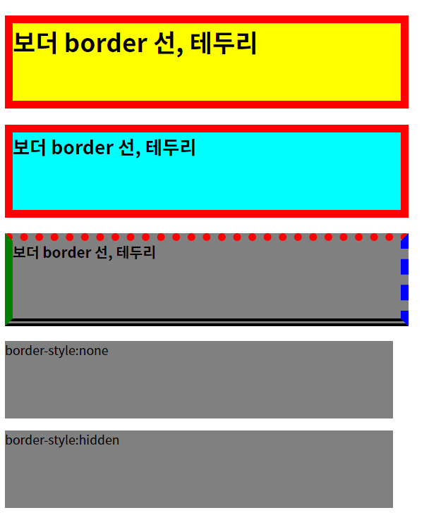 <h3>보더 border 선, 테두리</h3>