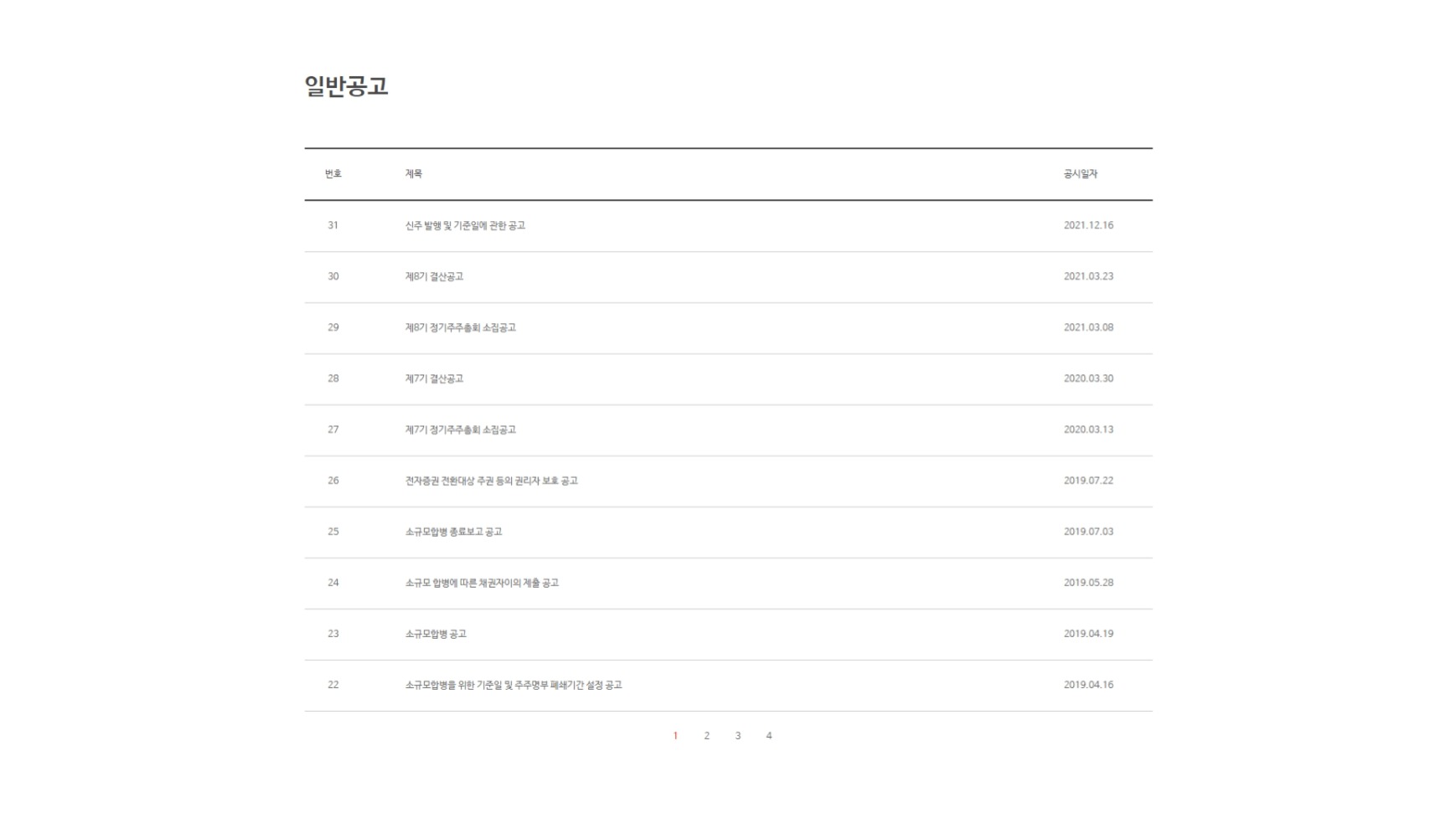 <td class="title2"><a href="#">소규모합병 종료보고 공고</a></td>