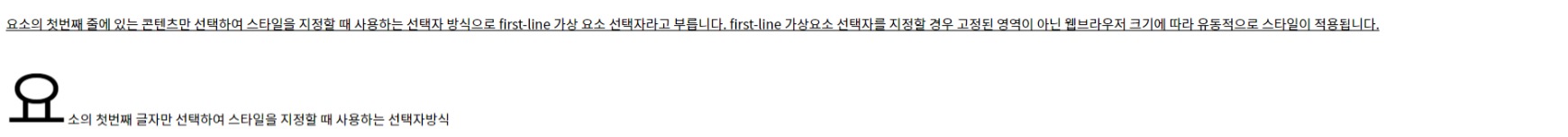 요소의 첫번째 줄에 있는 콘텐츠만 선택하여 스타일을 지정할 때 사용하는 선택자