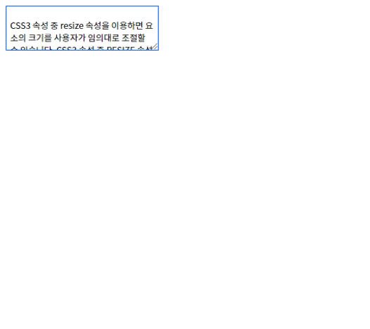 CSS3 속성 중 resize 속성을 이용하면 요소의 크기를 사용자가 임의대로 조절할 수 있습니다.
